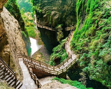 Package tour for Wulong Karst landscape, a UNESCO World Natural Heritage site known for its dramatic limestone formations and the Three Natural Bridges, which were featured in Transformers 4.